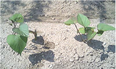 順調に茎や葉を伸ばしてきている、サツマイモ、ニラ。
